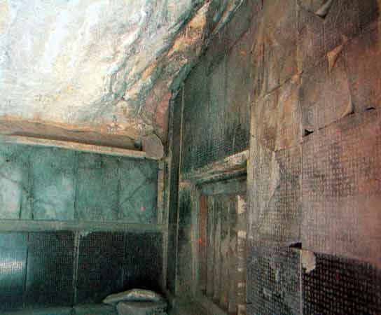 云居寺虽被炮火所毁,但闻名于世的石刻大藏经埋藏地下,保存完好。云居寺石经始刻于隋大业年间。当时高僧静琬继承其师北齐南岳慧思遗愿,在石经山刻石造经。唐贞观十三年(639)静琬逝后,其弟子玄导、仪么、慧暹、玄法又相继主持刻经事业,历经隋、唐、辽、金、元、明诸朝,延续千载,至明末方告结束。经版藏于石经山九个山洞中,其中藏经最早也最重要的是第五洞穴,称雷音洞,静琬最初所刻的一百四十六块石经镶嵌于洞内四壁之上。洞中央有四根八角形石柱,每根柱上均有浮雕佛像,共一千多尊,称千佛柱。由于山洞藏经贮满,辽金时代续刻的经版就没再运上山,而藏于云居寺南塔下地穴中。