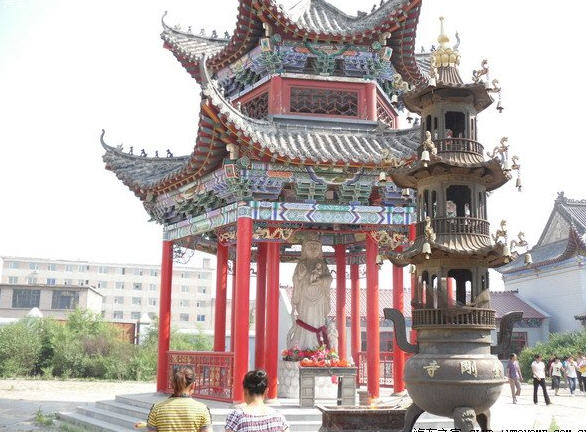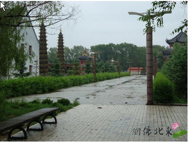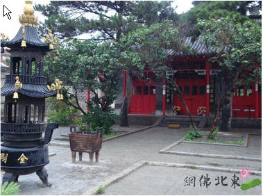 寺东侧为菜鲑,本寺尼僧种植蔬菜、玉米以自养。西侧为雄伟的文殊殿,外观是二层,殿内实为一层,表示佛法的不二法门。交殊殿前设念佛堂,供四众弟子打佛七之用,右侧为本寺开山和尚定海法师灵塔。