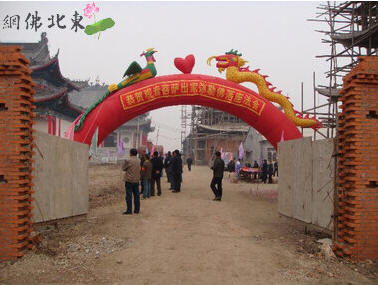 大乘启用,妙法含藏,慧在人间,普利友情,回报四恩。法藏寺前景可观,气势宏大,雄伟庄严,预计三年竣工,总投资约三千万元,采用宋代凤格的仿古建筑,既有北方建筑的雄伟庄严,又有南方建筑的精湛艺术特色。整体设计分三条轴线:中轴线由南向北依次修建天王殿、大雄宝殿、佛光阁;东轴线建帝释殿、大悲塔、观音殿、药师殿;西轴线建伽蓝殿、地藏殿、极乐楼。整体设计为“川”字形设计,既有法堂、禅堂、念佛堂,又有安养院、往生堂,内容全面,堪为丛林,建筑规模宏大,雄伟壮观,殊特圣举。