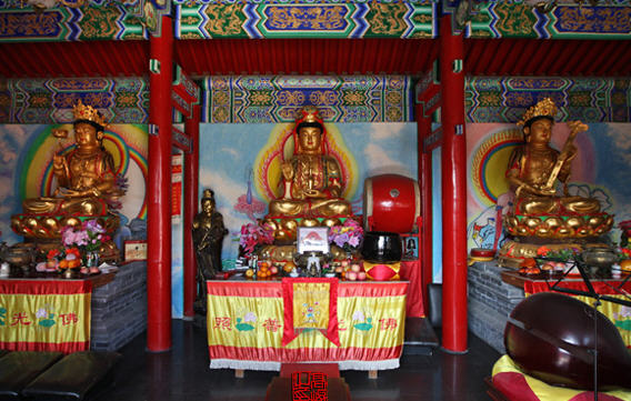 北京通州普渡寺,座落于北京市东郊武术之乡 ----- 通州区张家湾镇陆辛庄。寺院历史悠久,青砖灰瓦,雕梁画栋。前后三进,历经兴衰,寺内香火依然兴旺。僧有悟性,佛有灵光。对于寺院的起源现已不得而知了,可能只有山门的那棵老树成了历史的唯一见证。 但据文字记载,本寺曾于道光十五年得以重修。后来的一段时期,这里的百姓将其称之为“三士庙”-----因以供奉观世音菩萨、文殊菩萨、普贤菩萨而得名。到二零零二年,一些善众自发筹资对寺院进行了整体恢复和重建。先后复建了大雄宝殿、圆通殿、伽蓝殿、地藏殿、天王殿、藏经楼、禅堂等。于二零零四年完工。