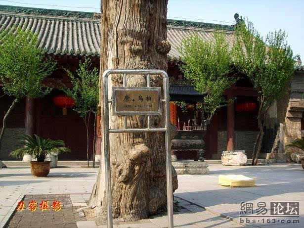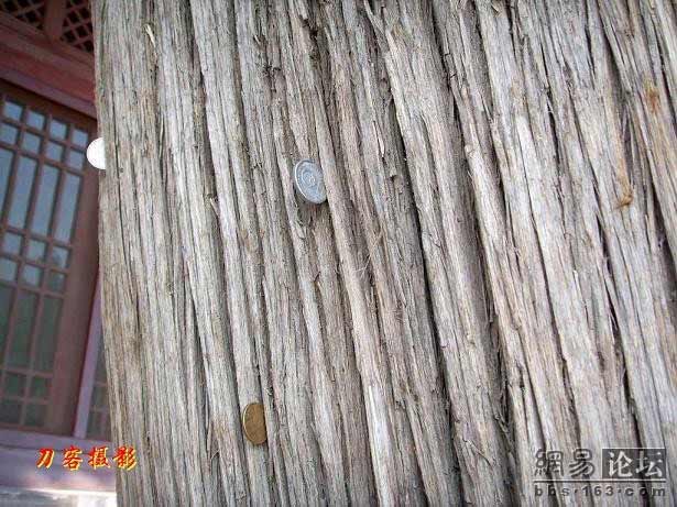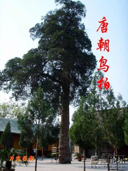 二是鸟柏。皇寺院内,有一棵一千二百五十年的古柏,高达二十多公尺,挺拔苍劲,枝桠繁壮,一年四季郁郁葱葱。古柏树冠十分繁茂,大致可分七层,其势如烟如云,翠浓异常。由于此古柏位居深山古刹和玉泉环绕之中,常栖息珍禽鸟。再加上树冠如此庞大,经常迎风自吟。两鸣交响,酷似百鸟鸣唱。据植物学家考证,该古柏树种优异,培土肥美,所以树纹结构异于寻常。结合民间美传:“每落一鸟,便增加一鸟形花纹,久而久之,柏纹如落鸟之众,落鸟似柏纹之美。可惜,在很早以前的一个深夜,从南方来了一个明眼窃宝人,利用秫秸掩盖,劈开树干,偷走了鸟纹。现在留下的一丈多长,三尺多宽的伤痕,就是当时盗宝的明证”。该传说虽然优美动听,但实际上是因雷击所致。鸟柏的美丽花纹依然存在。