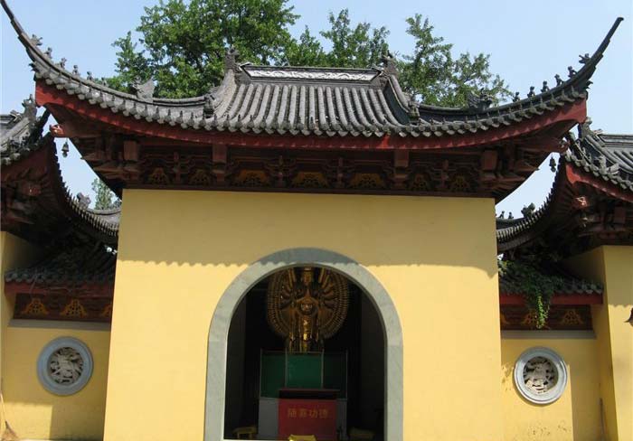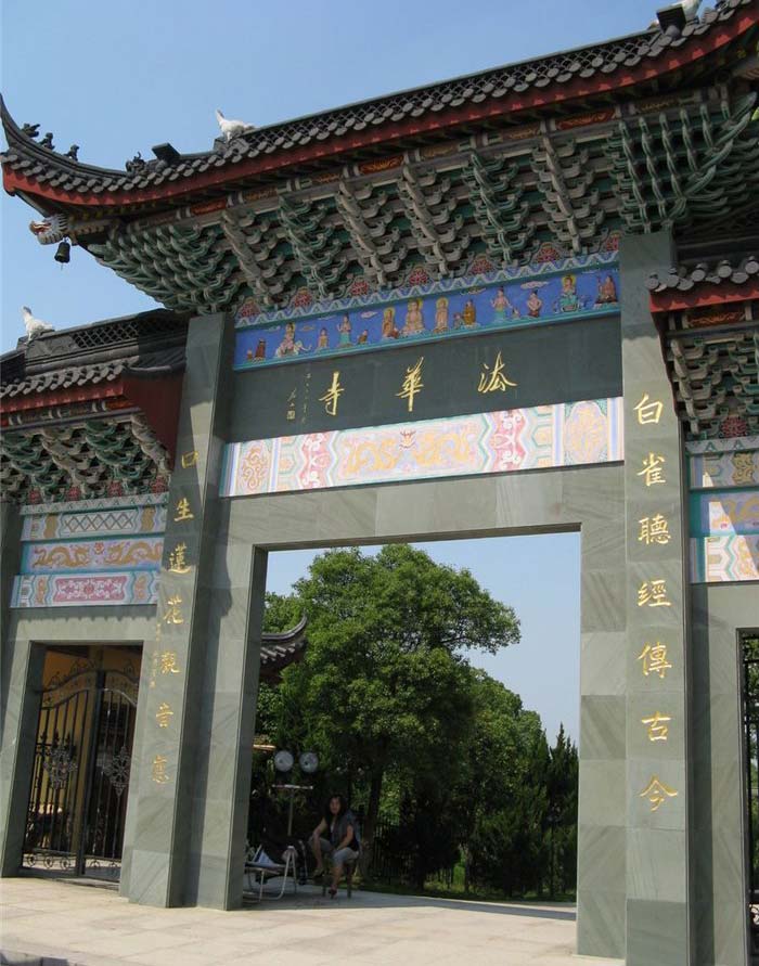 法华寺又称白雀寺。在湖州西北9公里,弁山东麓石斗山。晋王羲之曾登临。南朝齐(479-502)比丘尼道(足旁加责)字总持曾在此山诵法华经,昼夜不息,共二十年,圆寂后即葬其处,相传梁大同元年(535)道(同上)灵骨所藏之宝龛忽生青莲,有司录实奏闻,诏建法华寺。道(同上)生前在诵经时,经常有白雀旋绕,若听法状,故又称白雀寺。唐宰相李绅和五代吴越王曾改名惠觉寺。