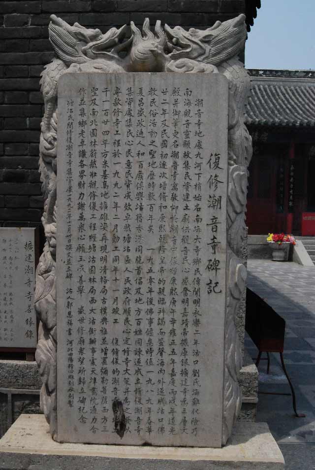 原名菩萨庙。在塘沽区西大沽海河入海口南岸。明初创建,历经毁修,现存建筑为清雍正五年(1727年)重建,坐西朝东,面向海河。原有前後两进院落,现存山门、大雄宝殿和四座配殿,以及一座柳山亭和南北跨院。大殿面阔三间,进深一间,前後廊,青瓦硬山顶,砖木结构。殿内曾供奉南海观世音,俗称“菩萨奶奶”像。为大沽口仅存的祭祀海神的庙宇。1992年重修,与大沽口炮台、渤海儿童世界构成别具特色的海滨文物名胜旅游区。