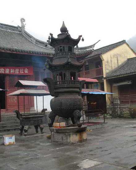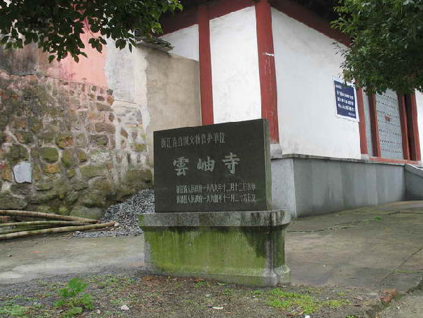 云岫寺在德清县二都乡云岫山中。始建于宋淳熙八年(1181),后几度兴废。元至正五年(1345)重修。云岫山旧有青云塔,故又名塔山。寺背倚玉屏峰,周围有大牛山、轿子顶、猢狲山、宜秋岭等,群峰环抱,竹翠松茂。寺内侧有宋梅和四季古桂,景色宜人,为游览胜地。清光绪十三年(1887)住持广严禅师奉旨进京,钦赐龙藏(清内务府所刊佛教藏经)12部及全副蛮驾,回山传戒。慈禧、光绪帝、恭亲王分别手书。慈禧书“藏经阁”、“清净圆通”、“大雄宝殿”匾额。其时有僧徒达七八十人,殿屋99间半,大钟1口,大香炉 l只。近百年来,历经战乱,香火渐衰。解放初,尚存宋代风格的大雄宝殿以及清代修建的金刚殿、配殿、观音殿、藏经楼、斋堂、戒堂等40余间,面积2200平方米。1982年列为县级文物保护单位。1985年,国家文物局拨款,省文物考古研究所古建筑维修中心设计,按宋代风格进行恢复修整,使800年古刹重现光彩。今朱门粉墙,翼角腾空,雄健古朴。1989年12月定为省级文物保护单位。