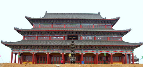 在圣清法师精心设计和组织下,一期工程大雄宝殿、天王殿、钟楼、鼓楼、僧寮已于2006年10月全部竣工,並于2007年4月举行大雄宝殿落成典礼。二期工程琉璃宝塔、万佛楼、地藏殿、三圣殿、山门、办公楼、念佛堂正在抓紧施工中。予计2007年?全部竣工,为迎接2008年奥运会的召开增加一道亮丽的风景线。