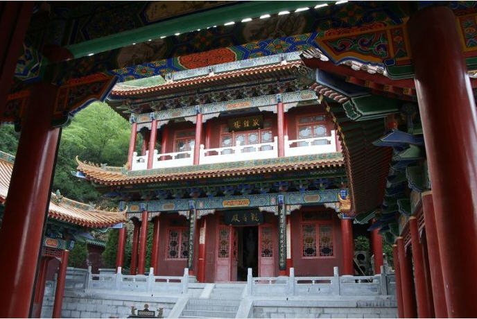 山中圣泉后被扩建在龙王殿内,叫盘龙泉。现在,泉水从一个铸造的龙口中涓涓流出,有手指粗细,注入方形池中,方池容积0.73立方米。据说,池水取之不尽,用之不竭,旱来不减,涝来不溢,严寒不冻,酷暑不腐,水位永恒不变。千人聚寺,大兴泥土修建工程,从无缺水之忧。而且水质甘甜纯净,有益寿保健功效。