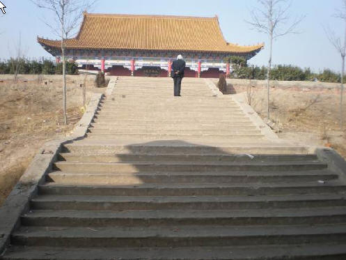 刘秀来到河北,身受三重压力;一是来自农民起义军的武装势力;二是来自各豪强大族的武装势力;三是来自更始帝加给的压力.因此他奠基的土台分为三个台阶,暗示了压在他身上的三重武装势力.只有站在他们之上,才能统一天下称
