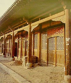 寺院正面进去是山门,山门墙壁上有四大天王画像,威武勇猛。院东侧是钟楼,西侧是鼓楼。过山门是弥勒殿,殿内正中供奉弥勒,背面供奉观音菩萨。两边是八大金刚、二十四诸天塑像,皆栩栩如生,妙相庄严。弥勒殿後是大雄宝殿,殿内供奉“华严三圣”:正中释迦牟尼佛、左古为文殊、普贤两大菩萨。两壁上的壁画现保存完整,用笔流畅。