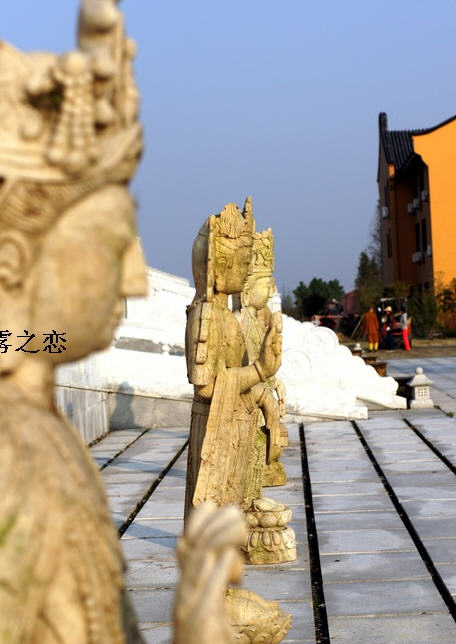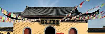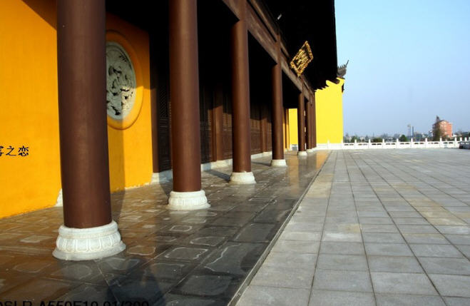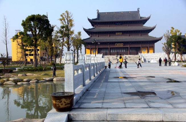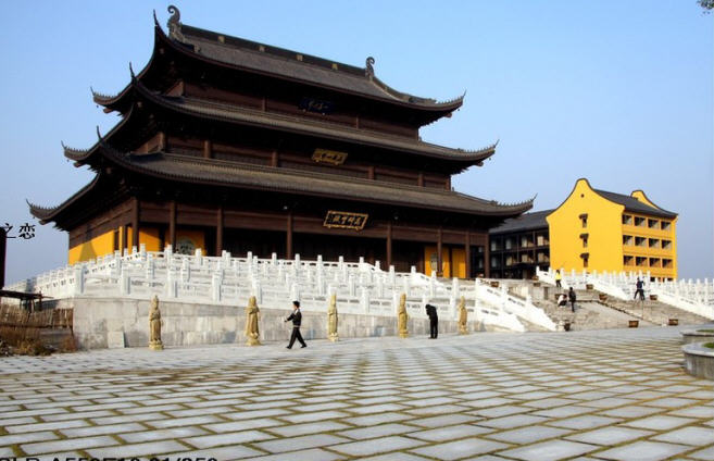主体佛教建筑沿中轴线布局。突出寺院中轴线,讲究序列的特征,拟对称而又均衡的布局形式,以保持寺院浓郁的传统格局。在中轴线上,主要布置牌坊、山门、钟鼓楼、天王殿、大雄宝殿和千佛阁、大悲阁和藏经阁。各座殿、阁均有平台,由天王殿平台至藏经阁平台,逐渐加高。殿、阁之间空间变化,突出大雄宝殿。使之感到庄肃的净土。两翼建筑按照庭院式的“园中园”手法布置,使之功能明确,更富有中国传统的宗教园林的风格。