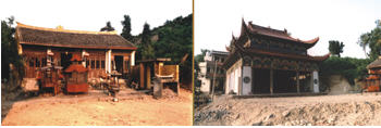 乐成镇米筛河村东南小山岙,甬台温高速公路北侧,坐落一佛教道场紫真寺。寺离村百余米,背靠“米筛河后山”,南是“初四坟坑”,东是横桐岙,西为上滩头村。兹因修建高速公路涉及部分寺基,就此寺向北移动重建,改向为坐北面南。2005年米筛河与横桐岙两村善信何权兴、张贤岳、张益胜、何敖常、张如希、何云星等,及僧海通领首,得十方檀越,聚资50万元,辟山整地,拆去神殿三间成天井,重建五间二搂大殿,高达15米,占地289平方米,奉三圣像.留存的四间大殿改供胡公大帝.继在新大殿后建僧房,斋堂一幢,为五间三楼钢混结构,付资20万元.寺总占地面积1820平方米。紫真寺初称紫真庵,系尼姑堂。据传创於清朝后叶,址在米筛河村西偏的“老堂基山’。民国廿年(1931)迁今址重建,坐东朝西.创前进大殿三间,左右轩舍二间,僧田斗亩,有僧世慧住持.世慧圆寂,寺宇荒废。1958年,庵改办小学.1978年,两村募缘重修,增建后进四间,将三圣像移后进大殿,前进勿为神殿.有僧慧门住持;.慧门上海人,未受戎.后僧象静入驻,2002年冬,象静蒙难车祸.翌年,僧海通来寺住持发愿弘法,海通26岁,江苏人,俗名谷培伊,徒1众. 民国廿年老堂重建时,得善信支持。其中有:米筛河何瑞进、何瑞旺乐助银100两,米筛河何进波、何进村助银、山田及大殿基,横桐岙张守顺顷乐助山、田园,米筛河何正焕助山、田园等。以上以存有大梁上的字样为证。