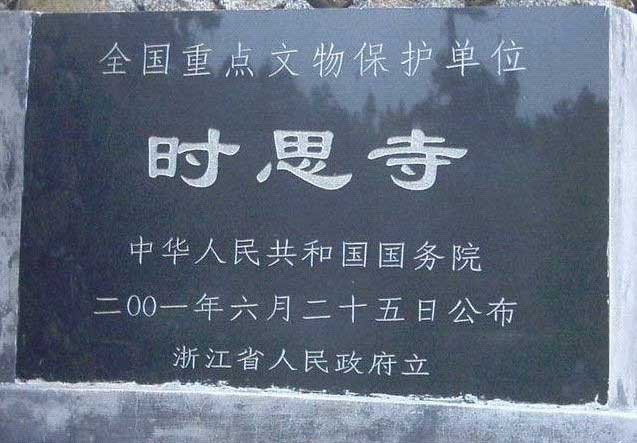 景宁时思寺(2001年6月25日公布) 元至正十六年(1356年)创建,明末清初续建。由山门、钟楼、大殿、三清殿、马仙宫、梅氏宗祠等古建筑组成。总体布置座西朝东,中轴线上有弥勒殿 ( 已毁 )。保留了大量元代原构件,是一处具有元、明、清各时代特征的古建筑群。相传梅氏一六岁幼童守祖父墓,居庐三年,不离其侧,宋高宗闻报,旌表其人为“孝童”,其庐为“时思院”。明洪武元年(1368)诚意伯刘基书额“时思道场”。宣德元年(1426)改院为寺。系汉式布局建筑群,为江南现存宋元时期主要建筑,属省级文保单位。