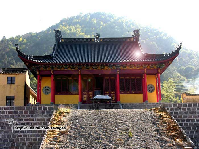 大凡好的山形都是“横看成岭侧成峰、远近高低各不同”的。在长洋岭顶上望去,明恩寺山形犹如“猛虎出林”,大概王钫看中亦在于此,宜于子孙出将入相;当你站到牌门舒正面瞻望,却又变成活灵活现的童子在跪拜。但当地人站在寺前观看小山又成了“犀牛望月”,故当地人又把它叫作犀牛山。
