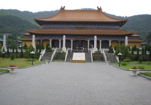 2002年9月一座占地200亩的寺院重新建成,规模宏大,天王殿供奉弥勒佛像,大雄宝殿高30多米,重檐庑顶建筑,殿前立六根高9米,直径达1米用汉白玉雕刻而成的图腾,底为云龙金刚座。殿内供奉的释迦牟尼佛像高3米余,重30多吨,东方、西方三圣玉佛,各重21吨、27.7吨、46.6吨。在八德莲池和藏经阁、地藏殿,大悲殿内分别供奉地藏菩萨和玉观音菩萨。藏经楼的两侧有思源亭和献璞亭。亭内各树一块重5吨的功德玉碑。是迄今世界上最大的整体佛教寺院。