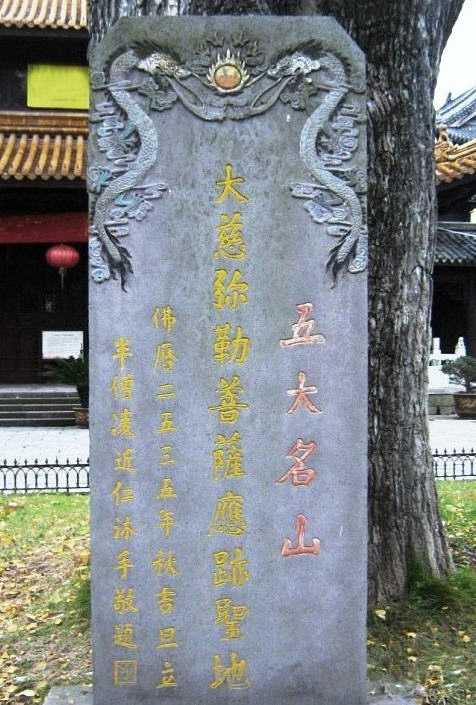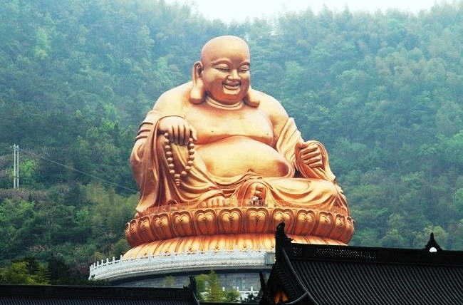 五代时,奉化出了位布袋和尚(?一916年),自称名契此,常携布袋,教化群众,很得群众信仰。临终时说了一首偈语:“弥勒真弥勒,分身百千亿;时时示时人,世人自不识。”因此,人们认为布袋和尚是弥勒菩萨的化身,就在寺院的天王殿正中塑了他的像。
