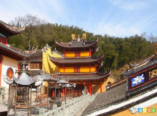 丹城西寺:Dancheng Xisi,以在凤跃峰下称凤跃院。宋治平二年(1065)改赐等兹禅寺额。位于象山县人民政府驻地丹城西北0.9公里丹城城区凤跃路。占地由原4480平米扩至1万平方米,主建筑大殿五开间,宽19.5米,进深11米,石柱、木柱相间,柱上部雕如意头作饰,中嵌“寿”字,殿后原供玉佛2尊,传来自缅甸,“文革”时毁,经石工精修今合为1尊,大殿前楹柱上悬一联:“海国旧游经,依然到处桑麻,满城桃李;蓬山无限好,更有一湾流水,几杵疏钟。”为民国12年县令李芳题。天王殿已重建焕然一新,两廊前10间、后5间,东廊外为斋堂,堂外高坡上,中三楹药王殿,左右精舍翼然,西廊外客房一幢5开间两层,建筑规模于县内首屈一指。县内古刹首推西寺,刘宋元嘉二年(公元425)建。明洪武二十四年(1391)立为丛林。清乾隆三十五年(1770)大修。民国12年(1923)重建大殿。70年代部份火毁,玉佛殿被拆。1984年列县重点文物保护单位,并拨款重修。