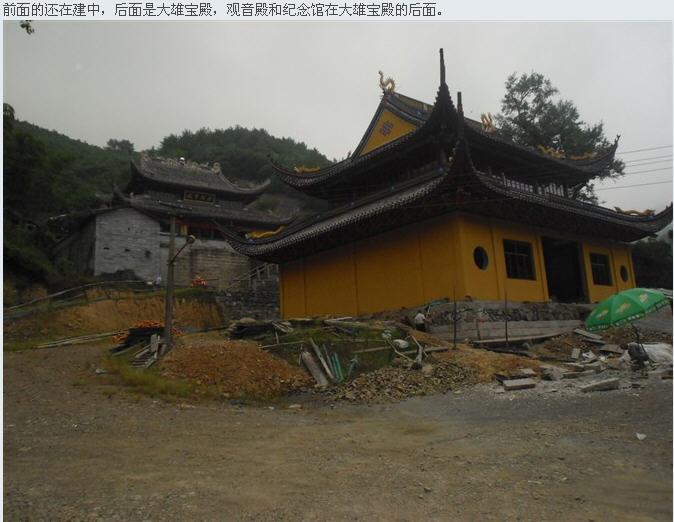 我自己所了解的:最近的一次重建是1999年开始的,这是村里的领导告诉我的,他说是911事件的时候开始重建的,那就是99年。目前大雄宝殿建好了,观音殿也建好了,天王殿正在建设中,门口的道路和停车场也在建设中。寺院已初俱规模,香火也越来越旺,相信不久将成为杭州上海江苏等江南地区的又一知名景点。