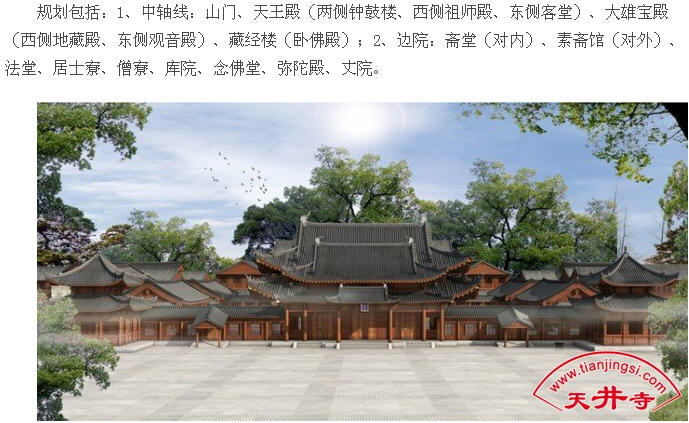 这里,将打造阿弥陀佛道场,以天井寺为中心,结合周边山体环境建设一个具有鲜明佛教文化特色的人文景观净域——中国佛教文化修行中心,为佛教文化的弘扬提供研究、交流和学习的平台,使之成为中国乃至世界范围内的佛教圣地,带动和促进宗教事业与旅游文化的发展,促进区域经济发展与文化建设,造福社会,造福人民。