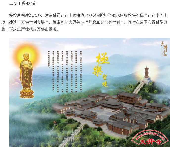 这里,将重现千年古刹昔日建筑景观的辉煌,恢复历史文化古迹,落实国家宗教政策,振兴千年净土圣地,留传千秋万代。