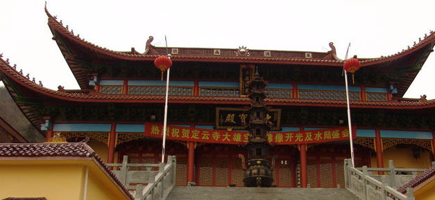民国三十四年,方志敏同志率领的新四军老虎团曾驻扎在定云寺。 党的十三大召开后恢复了民族宗教信仰,落实了党的宗教政策,云头山定云寺在八方香客、广大信众的强烈要求下,在各级领导的大力支持下,经杭州市临安市二级政府批准,于一九九八年八月恢复香火,现正在重新建设中。大雄宝殿于二00三年农历八月初五正式破土动工建造,并于2006年10月落成。今后还将陆续建造各个殿堂,希望能得到善男信女、十方护法居士慈悲加持,共同弘扬佛法,让佛光普照千秋万代,让世界永久和平!