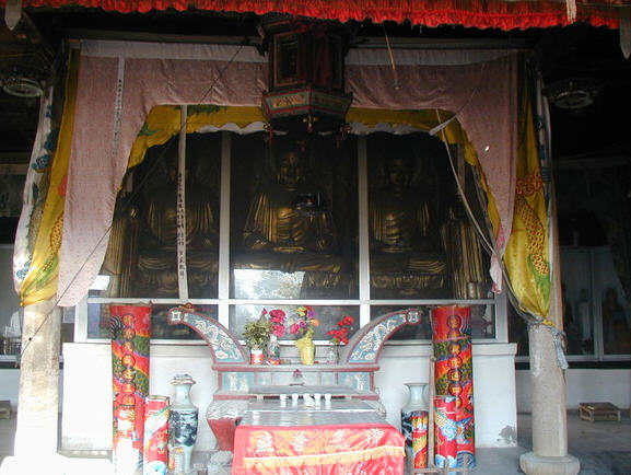 离县城北4公里,金田寺建于北宋976年,前有草坪水塘,后靠尖顶寨,拾级千步巨石很多,形象各异,名称很多,一巨石顶端凹成小潭,深60公分形如面盂,泉水常年不崮称面盂岩,一巨石三四十米横跨成洞,名杨府洞,可容10多人内塑杨府爷。
