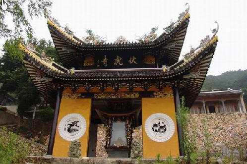 座落在温州仙岩风景区大罗山积翠峰的伏虎寺,系北宋楞严遇安禅师开山创建。据《瑞安地方志》记载,遇安禅师志心受持《大佛顶首楞严经》,日诵夜参,经年不缀,终因参悟此经而发明心地。于是广开法席,大弘《楞严》,朝夕参访问道者,常数百人众。一日,秋夜月朗,微风吹拂,三百余人正谛听遇安禅师宣讲《楞严》妙旨,蓦然于山洞中窜出一只老虎,众人惊散,唯遇安禅师端坐无恐,对老虎喝曰:孽畜!休得妄动,虎闻之应声伏地而跪。禅师睹状,又曰:孽畜!听经乎?伤人乎?若听经者,尾三摇席地而坐。虎闻声尾三摇蹲坐。四散之众,见此奇事,便随回坐闻法。之后,此虎便随禅师上山下山,禅师若下山,便将虎系一石上,后人将此石命名曰:“系虎石”,现仍存焉!初者,遇安禅师只搭一茅屋习经参禅,后扩而建之,便以伏虎而记寺名。