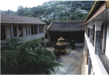 普明寺在七里港镇金光岙村,后枕骐麟山,面向南。明永乐《乐清县志》载: “普明堂去县西二十五里,在长安乡金家岙”。即此寺也。清代重建一次。民国间有尼6人,地4亩。后来寺被白蚁蛀蚀。1987年,当地善信集资,重建大殿3间及两偏房,均木结构,边房为宿舍。费资39158元。1993年,又重建大殿3间平房,比旧高大,奉一佛二弟子。左厢二楼8间,右厢二楼5间,是1993年后建。大殿有明嘉靖十八年(1539)匾,门外蹲石狮一对,庭院中植松一株,亭亭如盖。阶下有明嘉靖癸亥(1563)石香柱一根,西首有娘娘宫一座。现住尼2众,住持万有,领养女孩2 名。万有师七岁出家,今年已83岁高龄。全寺占地1225平方米。