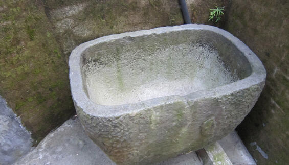 现藏于感应寺内,明代文物(约为公元1635年建造),水缸长:0.88M,高:0.52M ,壁厚:0.04M,水缸唇面刻有: