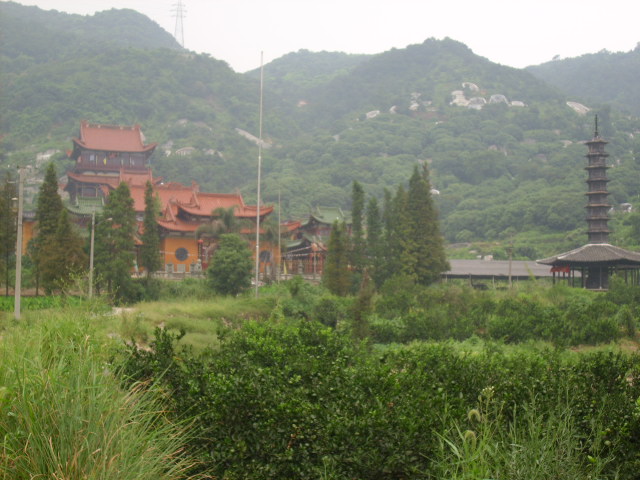 我们现在看到的是正在修建的国安寺。如今寺庙共五进,几十余间厢房,占地面积达6000平方米。我们去的时候,正在建第五进,估计很快就会竣工,这项工程由浙南土建集团公司承包,总投资1千多万元。