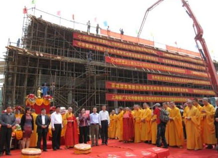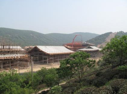 太湖西山岛正在恢复建设的南朝古观音道场——观音寺,日前(2011年5月7日)主殿(圆通宝殿)封顶。道场将以园包寺,打造成为中华第一观音园,今年年底建成,为太湖旅游又添一景。