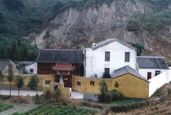 普照寺俗名仓后庵,位於蒲岐镇仓后村,坐东朝西。建於明末清初,原有佛殿三间、斋厨二间、厢房三间。民国间住尼四众,有地三亩,属子孙堂。1965年,厨房改建成仓后小学。1980年后,有尼雪参与徒白通居住。1997年在善信吴素菊等倡议下,筹措重建,邀尼继攀进寺住持,山门重整。继攀善于经营,聚资运材。重修大雄宝殿为四间单檐,中奉一佛二弟子,左立三官大帝,右坐陈氏圣母。翻建西庑成六间二楼,为僧住,客房、膳厅,庑后平房二间作斋厨。四面筑围墙。寺处村南山麓,面隔田野是村居,环境优雅。寺后山场林木,前为农田,东墙外厂房,西临园地。寺总占地面积1040平方米。现住尼四众,住持释继攀。
