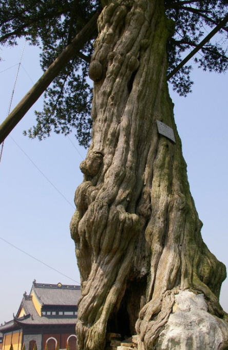 古罗汉松(亦称神灵树)。位于原大雄宝殿前,李根源先生称为“奇绝”,有1500多岁了。树干粗壮成虬枝盘绕,像有九龙盘旋而上,贵为稀有之宝。更为神奇的是该古树因寺院的盛衰而生死,被当地人奉为“神灵树”,朝拜者甚多。往昔该树已慢慢地枯死,现在寺院恢复重建,树已重新发芽,枝叶茂盛,苍劲挺身而拔。树高20多米,四五人才能合抱。