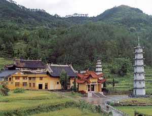 中国共产党十一届三中全会后,政通人和,普天咸呈瑞兆,1984年,天台正宗第四十六世住持僧释了识,倡持募缘复建三圣殿,1985年春,邑里众举周大森等为首事,释了识偕周日夜操劳,侨属胡克胜、华侨胡从库等解囊资助,十方百姓纷纷募资和投工献料,共攒资十余万元,同年十二月之朔告成大雄宝殿,大殿为木构重檐歇山造,高14.8米,面宽七开间,计24米,进深十三檩七柱,计15米,宝殿中,奉本师释迦牟尼佛,高9米多,两侧塑十八罗汉,正殿影壁,塑童子参观音为主尊的“八十四”堆山,计有一百一十七尊,鉴于匠者与有识之士博采历代寺观营建法式之精魂,复建大殿益显壮观宏伟。