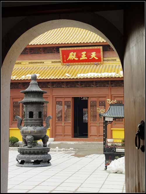 “山门”故称山门殿。山门名字的由来有两个原因,第一个是“三解脱门”,有无相门(东)、空门(中)和无作门(西),另一个是过去寺院又称为“丛林”所谓天下名山僧占多,“丛林”一般都是处于名山大川之中,“山门”又作入山之门,表示进此门来就与世隔绝了!