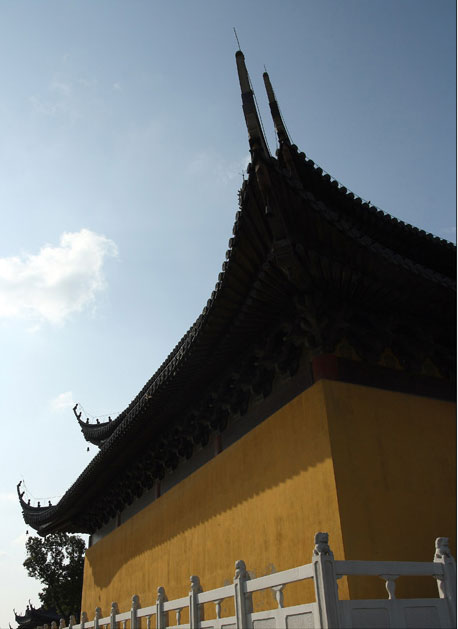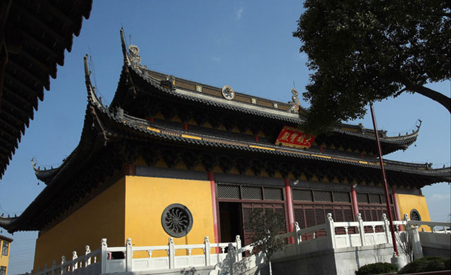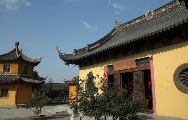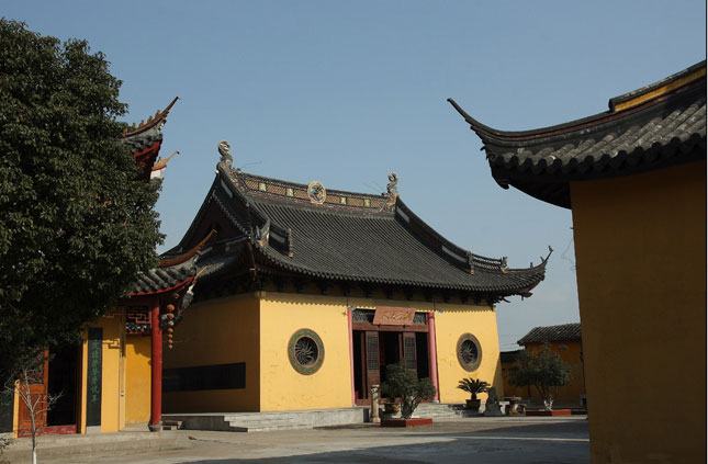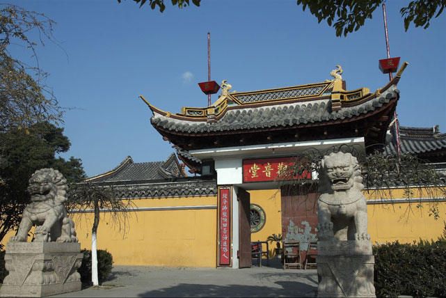 虞山镇莫城管理区原有聚兴庵。位于莫城言里、坭桥村交界处,临昆承湖。建造年代无考,代有兴废。民国十八年(1929)村民颜松泉等发起翻建。建国后渐毁。随着党的宗教政策的不断落实,上世纪80年代末,信众在昆承湖边原址募建红观音堂,先后建成观音殿、天王殿及附房等,总面积为1350平方米。2000年秋,又建造400平方米的念佛堂等并铺建场地、道路。2001年11月18日,举行念佛堂佛像开光庆典。2002年在寺后围湖填土,2003年8月21日大雄宝殿奠基,2004年10月竣工。2005年3月18日举行大雄宝殿开光庆典。前后经18年的修复,现有殿堂、斋堂、宿舍、办公用房等40余间,建筑面积约3720平方米,总投资800余万元。
