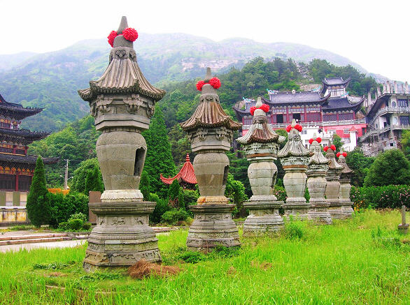 来到真如寺前,我就听说这座寺院中最值得一看的是宋代的石塔。而这宋塔一走进山门,就可以看到。在一片平整的草坪上,七座风格古朴的小佛塔一字排开,而两边是起伏的峰峦和苍松翠柏,有一种说不出的美感。宋塔每座高约四米,仿照印度瘁堵波形式,结合我国木构建筑特点,用石材精制而成。塔呈六角形金刚座,浮雕是中国古代传说中的骏猊、麒麟等神兽,栩栩如生。这些石塔的顶梁枋、斗拱和翼角出檐,都是依据《宋营造法式》的图案,因此造型独特,美仑美奂。