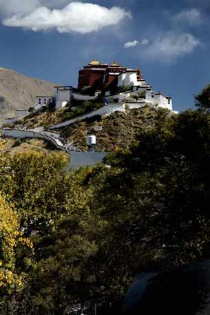 磨盘山关帝庙,在拉萨市区内,位于布达拉宫以西约500米处的巴玛日小山岗上。这座小山顶部平似磨盘,故称为“磨盘山”,藏语叫“巴玛热”。