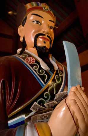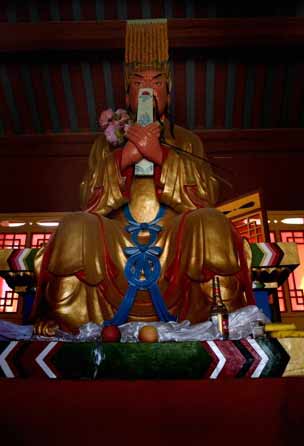 磨盘山关帝庙,藏族人称为“格萨尔拉康”,汉族人称为“关羽庙”。格萨尔是西藏的一位民族英雄。大约在13世纪时出 生在康区。他四方征服四敌,成为常胜将军,后人根据他一生的事迹编为“中诗”在民间广泛流传,即所谓的“格萨仲”(格萨尔传奇)。这里的格萨尔不是藏格萨 尔,而指的是三国时的汉将关羽,藏文称他为汉格萨尔。磨盘山关帝庙由福康安于1792年(藏历第十三绕迥之水鼠年)兴建。福康安(?~1796)是满洲镶 黄旗人,清代著名将领,富察氏,字瑶林,大学士傅恒之子,孝贤皇后之侄。以勋戚由侍卫授户部尚书、军机大臣。初从军机大臣阿桂用兵四川金川地区,后为封疆 大吏,历任云贵、四川、闽浙、两广总督,官至武英殿大学士,封贝子。1792年(清乾隆五十七年)奉旨率军进藏平息了廓尔喀入侵,颁布了藏族历史上著名的 《钦下藏内善后章程》。1796年(清嘉庆元年)病故。