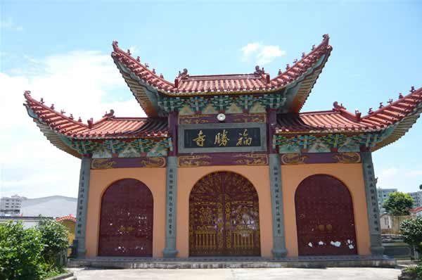 福胜寺建筑在九龙河畔的龙舌穴上,位于苍南县龙港镇下垟郑村,始建于清嘉庆年间。寺院五进,有圣门、山门、天王殿、大雄宝殿和藏经楼等,住持为各深比丘尼及其徒通道比丘尼。