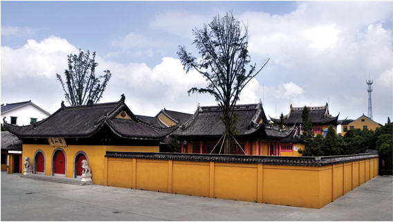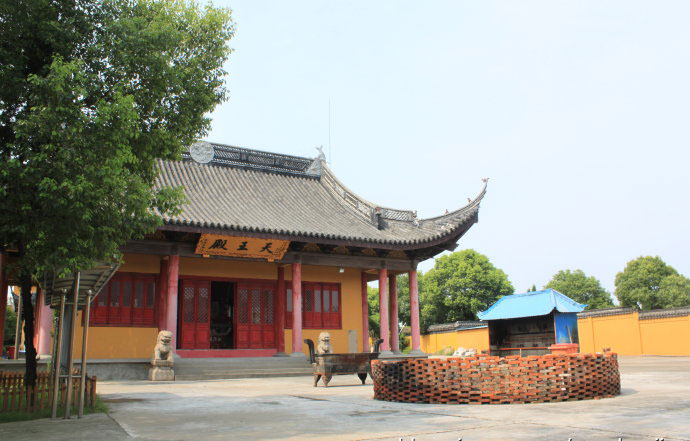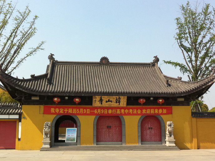 韩山寺位于江苏张家港市塘桥镇南京东路,据史籍记载:南宋建炎三年(1129),金国大将金兀术率领十万大军南侵,江东安抚使刘光世贪生怕死,不敢同金兵决战,轻易放弃重要城市扬州,致使金兀术一路势如破竹,从江苏一直打到浙江。宋高宗不得不从都城临安(今杭州)仓皇逃往越州(今绍兴),再逃往明州(今宁波)海上避难。在大敌当前的危急时刻,为了保住南宋的半壁江山,韩世忠奉命率领韩家军扼守长江沿线,拟以逸待劳,阻断金军退路,围歼敌人。当时,韩家军有一部分部队就驻扎在今张家港境内的塘桥、庆安、鹿苑等地。在这里,韩世忠带领部队构筑瞭望墩和沿江战备工事;又在西部丘陵山地构筑藏军洞和兵寨,军民团结,严阵以待,同仇敌忾,准备同敌人血战一场。韩世忠还在方圆数十里范围内修筑了其他军事瞭望墩,如,塘桥的韩墩,又称韩山,高约五丈,周长约七十丈,墩的东北有一条小河,就是当年堆筑韩墩时挖泥取土留下的河浜。