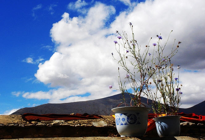 女喇嘛被称为"增玛".女喇嘛寺大不同于喇嘛寺的是干净整齐,院子中种满了各色美丽盛开的鲜花.