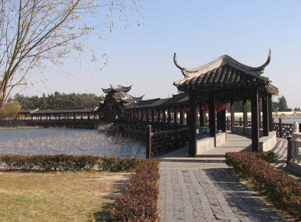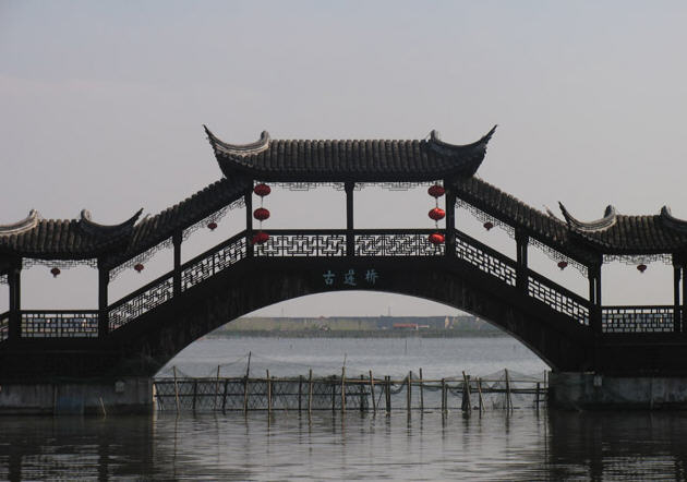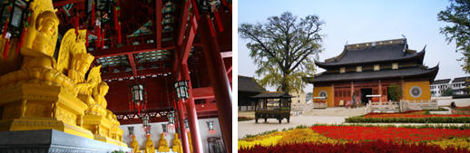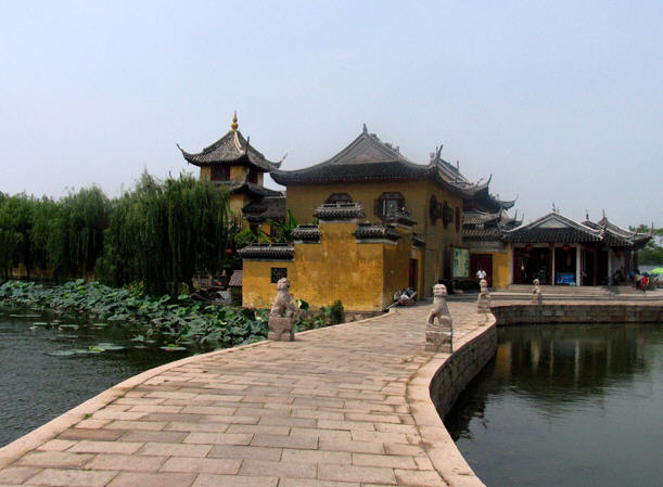 一溪穿镇而过,夹岸桃李纷披,晨霞夕辉尽洒江面,满溪跃金,灿若锦带,由此镇名而得“锦溪”。真可谓是“一溪金波玉浪,两岸繁花似锦”!而在这繁华如烟的市井红尘里,却有一方清凉净土安立其中——锦溪莲池禅院!