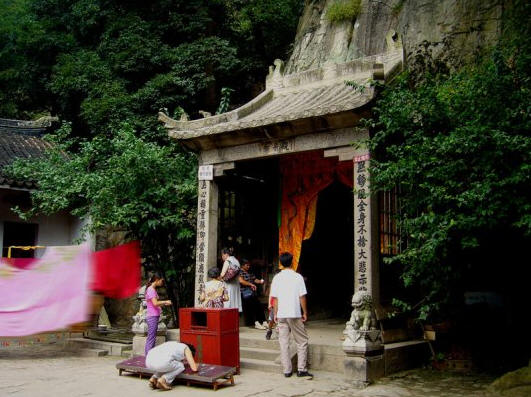 灵岩山座落在苏州西南三十里的木渎镇旁,沿着山路到落红亭向西便是观音洞了。相传越王勾践与范蠡献西施给吴王夫差于此等候,所以古时候把该洞称为“西施洞”。