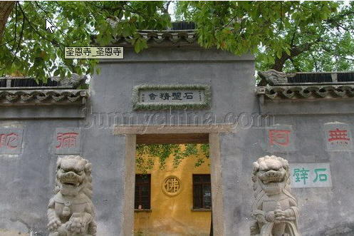 圣恩寺最早建于唐天宝年间,名天寿寺,南宋宝祐年间又建圣恩寺,当时两寺并寸,为上下道院场,称天寿圣恩寺.明洪武年间圣恩寺得以扩建,次第修建了观音阁、法堂、大殿、塔院、钟楼等.一时僧众云集,名僧辈出.最盛时寺殿建筑共五千另四十八间.