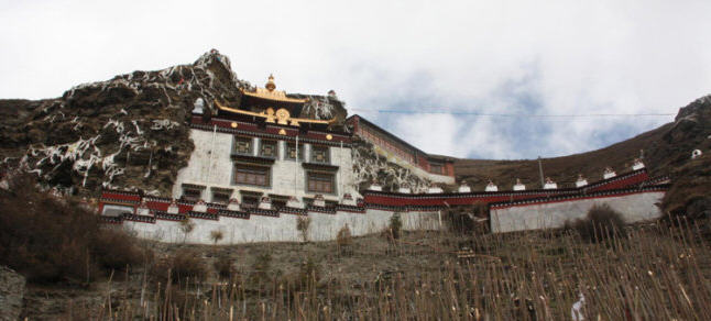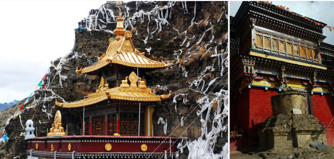 密勒日巴尊者道:东边白云缭缭处,洛卓沃龙寺耸立,雄狮般的岩石擎起,檀香木门之内,阿姆涅神石之上,端坐我之尊师玛爾巴。
