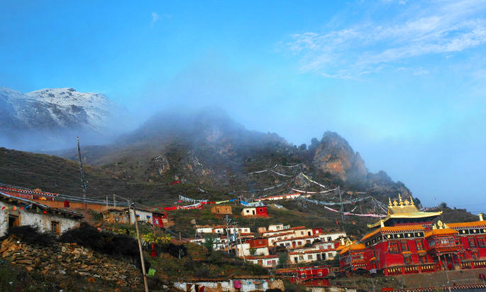 更庆邬金桑灯林寺(意为邬金禅定大寺)位于西藏昌都贡觉县敏多乡,它在金沙江畔,属于热克地区。它的西面是马头金刚圣山,东面是金刚亥母圣山,两山之间出生过很多大喇嘛,是莲花生大师、益西措嘉佛母等圣众的密修清净地。