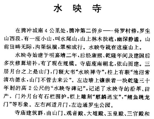 云南省腾冲县腾水映寺