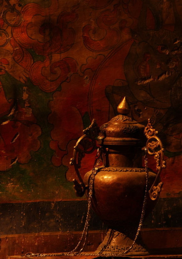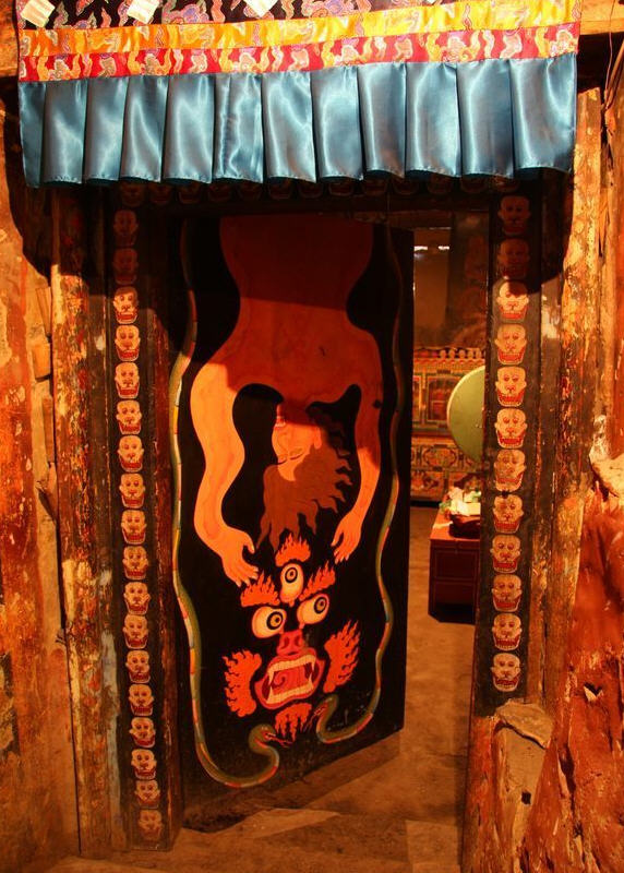 杜康大殿位于古堡西侧,传为公元 16世纪上半叶,由巴哇?祖拉陈哇所建。杜康大殿前有二柱回廊。扣除回廊为30柱经堂,经堂四壁皆绘有壁画,经堂后为4柱佛殿,佛殿西有一间两柱的密宗 殿,内塑有各种密宗神像,像高2.4米左右,神像大都血口獠牙,面目狰狞恐怖,披人皮或兽皮,挂饰人头等。杜康大殿二层为僧舍及库房等。