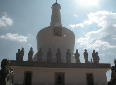 塔院四周昔日有禅房40间,为僧人参禅的地方。院中还有2000余斤重的铜铸大钟一口,为公元1656年(清顺治丙申)丽江木氏捐资冶铸。晨夕钟声,震动一山。可惜此钟在“文化大革命 ”中被毁。现白塔以西新建的大雄宝殿,轩昂大方,内塑有释迦牟尼佛、观世音菩萨、大势至菩萨像,是朝山者进香的地方。