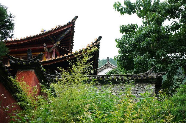 凌霄宝殿又称玉皇阁,坐西朝东,为五开间歇山顶式建筑。殿内中间供奉玉皇大帝,