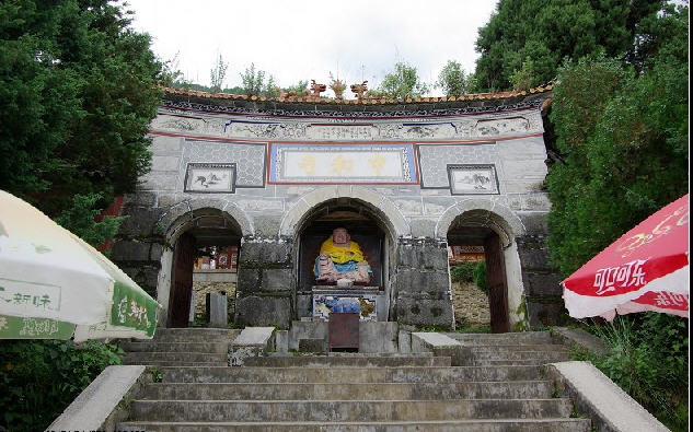 石龛里供有笑口常开的契此和尚(即布袋和尚,自称为弥勒佛显化,时人俗称大肚罗汉),背部墙壁嵌着清代康熙四十五年(公元1706年)九月九日云南提督偏图《御笔钦题中和山